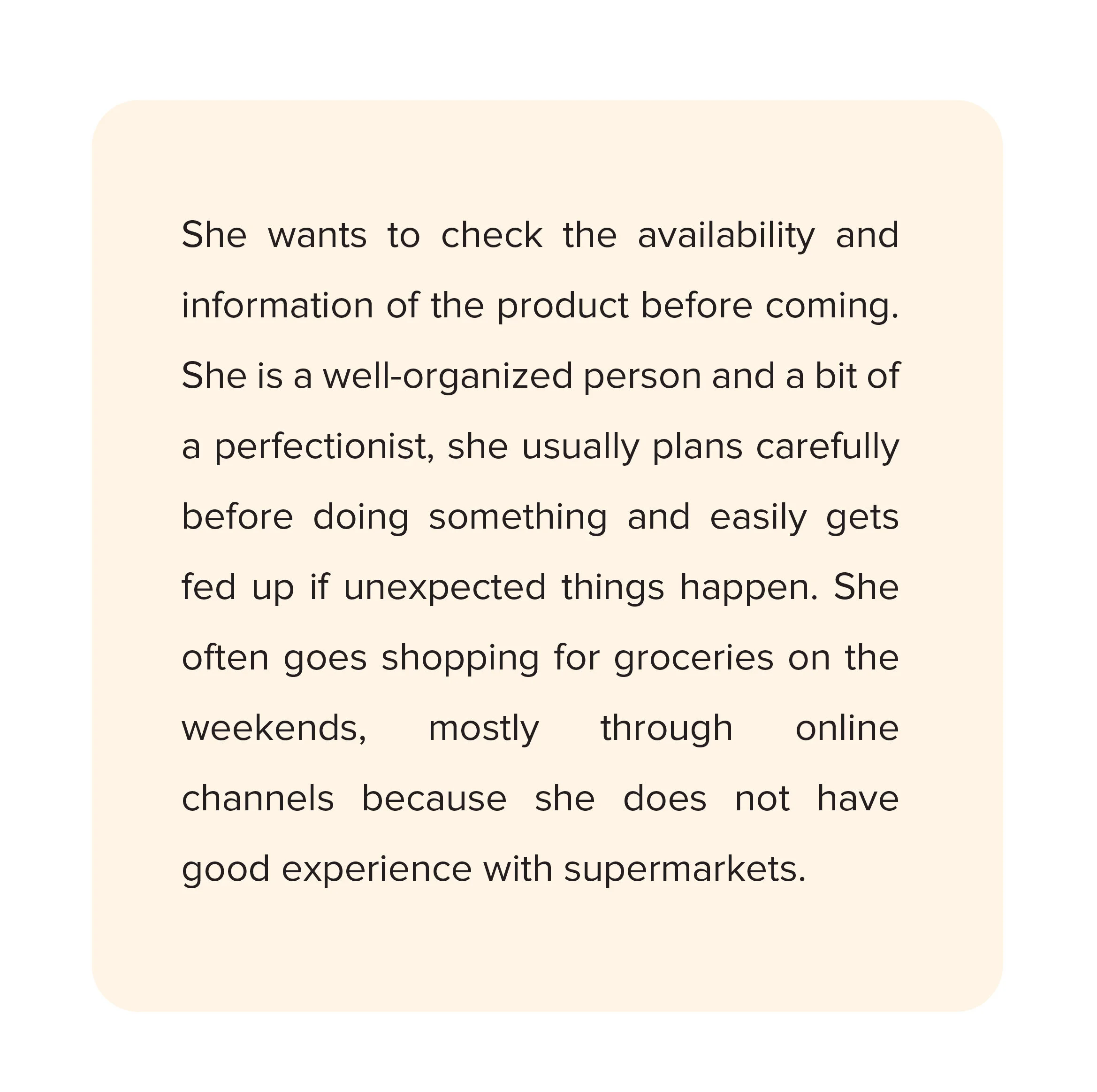 We conducted a survey asking about the experience at supermarkets with 60 people from the age of 18 to 45 - what difficulties they confront each time shopping and why they failed to reduce shopping time.