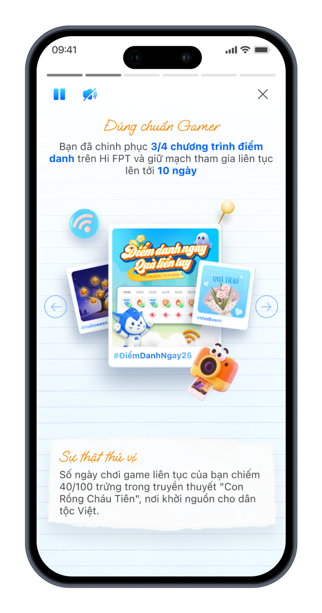 Recaps end with seamless integration to on-app minigames (e.g., lucky wheel spins), unlocking rewards and encouraging sharing. This creates a continuous event chain, boosting post-recap interaction and community buzz on Hi FPT channels.